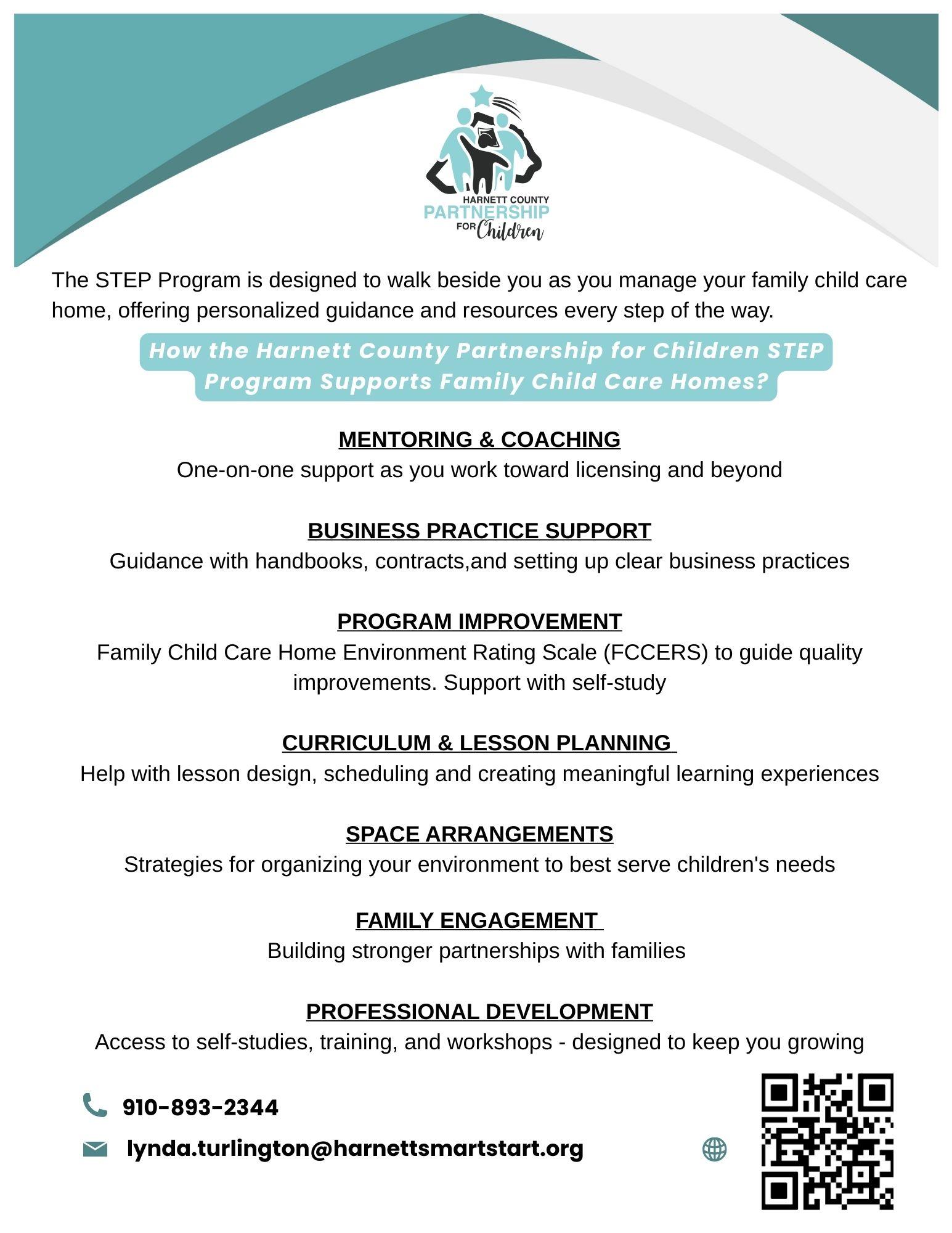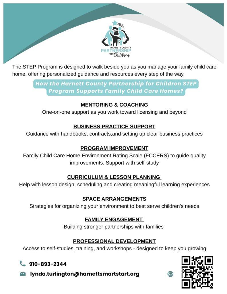 Program activities Scheduled Training & Events November 6, 2025 - Virtual November 13, 2025 January 13, 2025 - Virtual January 22, 2026 Trainings offered by HCPC STEP Program For additional information contact Lynda Turlington:lynda.turlington@harnettsmartstart.org or call 910-893-2344. 2022 Annual Early Child Care Professionals Appreciation Dinner 2018 Annual Early Child Care Professionals Appreciation Dinner 2024 Annual Early Child Care Professionals Appreciation Dinner 2019 Annual Early Child Care Professionals Appreciation Dinner EARLY CHILDHOOD PROFESSIONAL MEETINGS THERE ARE NO MEETINGS SCHEDULED AT THIS TIME.